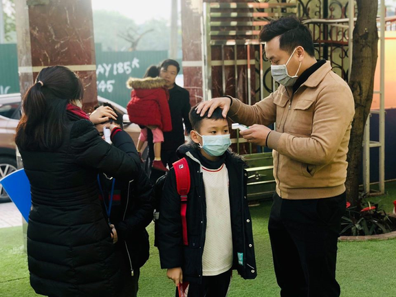 Ông Phạm Gia Hữu, Trưởng Phòng GD&ĐT quận Thanh Xuân (Hà Nội) cho biết, đã yêu cầu các trường mầm non, tiểu học, trung học, phổ thông phải trang bị máy đo nhiệt độ để đo cho học sinh, giáo viên, khách trước mỗi buổi sáng trước khi bước vào làm việc. Những học sinh bị sốt nhất định không được vào trường.