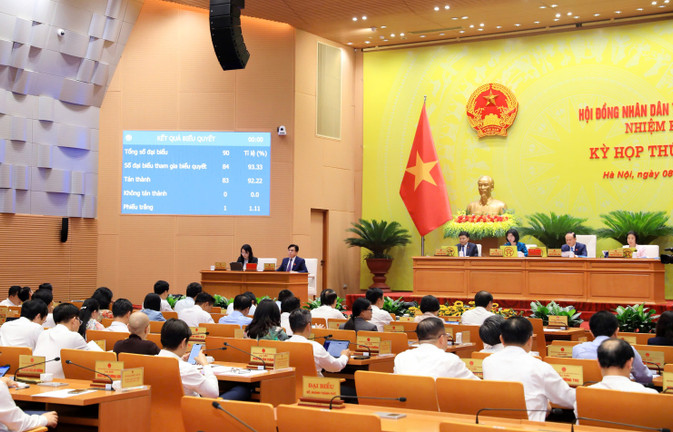 Chiều 9/7, với 83/84 đại biểu có mặt bấm nút tán thành, HĐND TP Hà Nội thông qua Nghị quyết về nhiệm vụ trọng tâm phát triển kinh tế - xã hội, bảo đảm an ninh, quốc phòng và thu chi ngân sách trong 6 tháng cuối năm 2025.