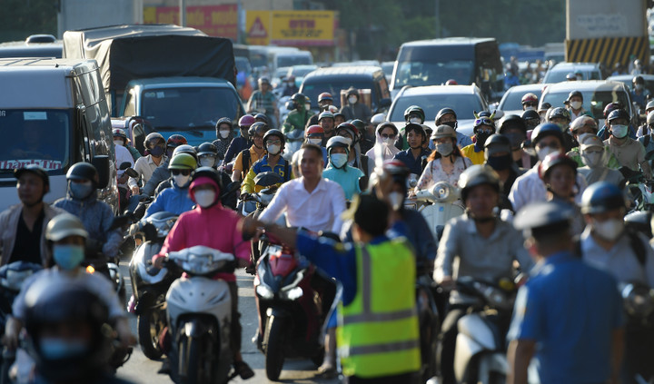 Người dân chỉ biết điều khiển phương tiện nhích từng chút một để trở về nhà