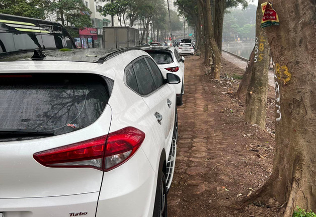 Hà Nội: Hàng chục ô tô đỗ trên vỉa hè hồ Linh Đàm bị rạch lốp