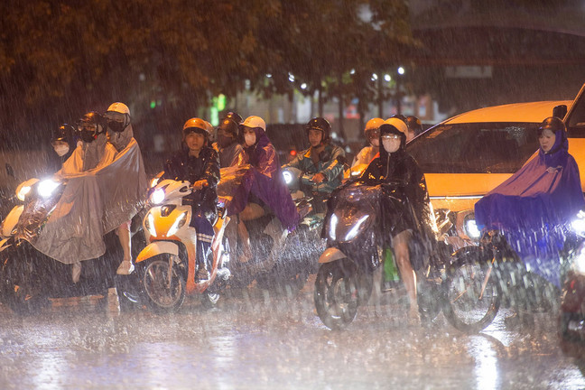Trận mưa lớn kèm gió mạnh bắt đầu trút xuống nhiều quận nội thành Hà Nội từ khoảng 19h. (Ảnh: Minh Đức)
