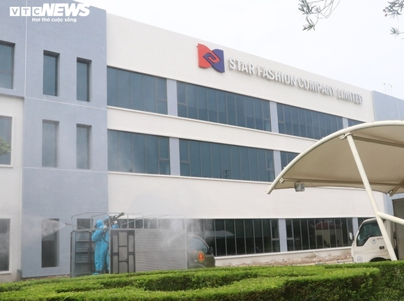 Phun khử khuẩn tại Công ty TNHH Thời trang Star thuộc khu công nghiệp Phú Nghĩa, huyện Chương Mỹ, Hà Nội sau khi phát hiện ca COVID-19.