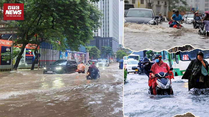 Do ảnh hưởng bão số 5 Kajiki đã biến nhiều tuyến đường tại Hà Nội thành "sông", khiến giao thông tê liệt.