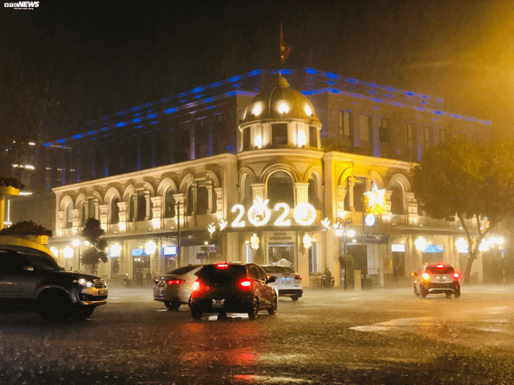 Khác với các đêm Giao thừa mọi năm, mưa rét năm nay khiến đường phố vắng bóng người. (Ảnh: Tùng Lâm)