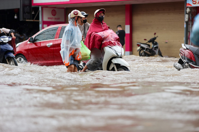 Hà Nội ngập lụt khắp nơi, dân chôn chân giữa biển nước cầu cứu người thân