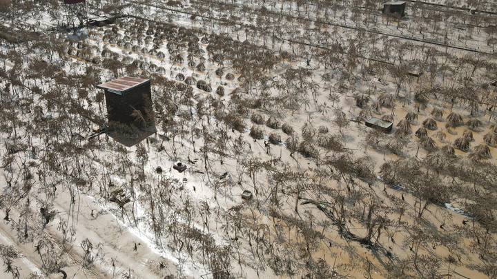Chịu ảnh hưởng bởi hoàn lưu bão số 3, nước sông Hồng dâng lên báo động 2 khiến gần 70% số đào Nhật Tân trồng sát bờ sông thiệt hại nặng nề, cây chết khô, trụi lá.