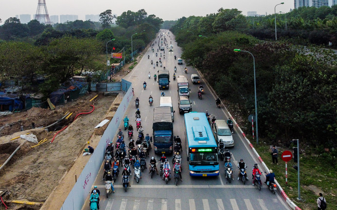 Người dân thoải mái di chuyển về nhà khi đi qua đoạn nút giao Đại lộ Thăng Long - Lê Quang Đạo.