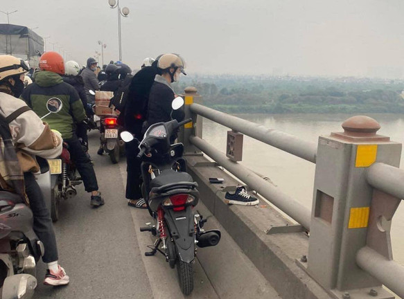 Tại hiện trường, trên mặt cầu Thanh Trì (hướng từ Lĩnh Nam sang Gia Lâm) có một xe máy không biển kiểm soát kèm theo một đôi giày, ví tiền và điện thoại di động nghi của người bị nạn.