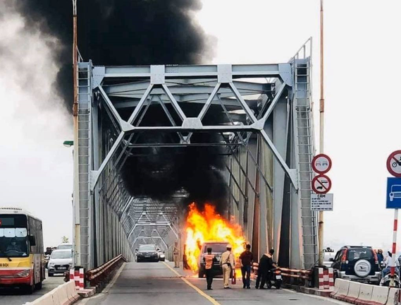 Nhận được tin báo, các lực lượng chức năng có mặt tại hiện trường để khống chế đám cháy. Lực lượng CSGT đã chặn đường cả 2 phía đầu cầu ở làn ôtô, người dân hiện chỉ được đi ở 2 làn hỗn hợp bên ngoài.