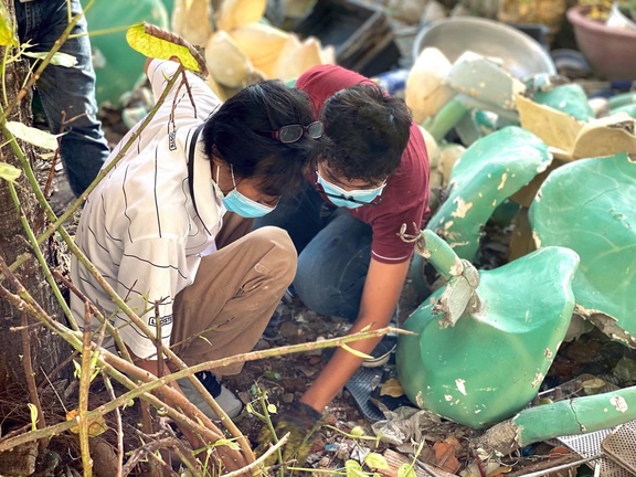 Hai cha con đội nắng, bới rác tìm di ảnh người thân 'bị lạc' ở chùa Kỳ Quang 2