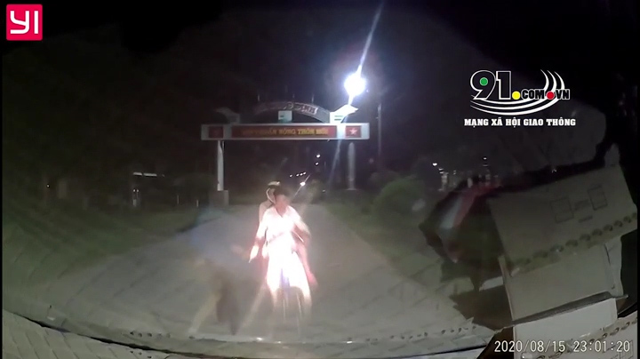 Hai thanh niên cầm dao phóng xe máy tốc độ cao tông bẹp đầu ô tô