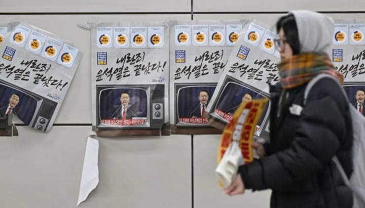 Những tấm áp phích in hình Tổng thống Hàn Quốc Yoon Suk-yeol. (Ảnh: Getty)