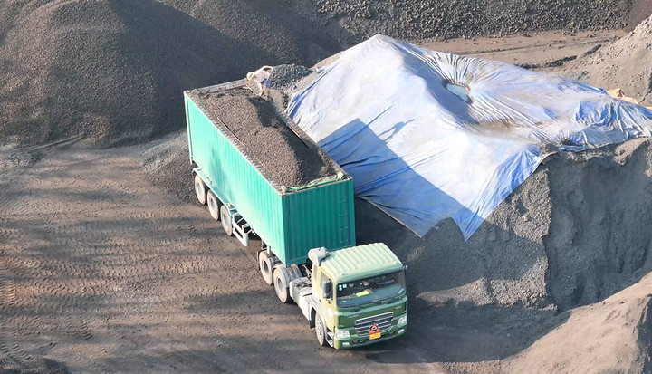 Những chiếc xe container có dấu hiệu cắt nóc, được chuyên dùng để bốc than từ bãi lên xe.