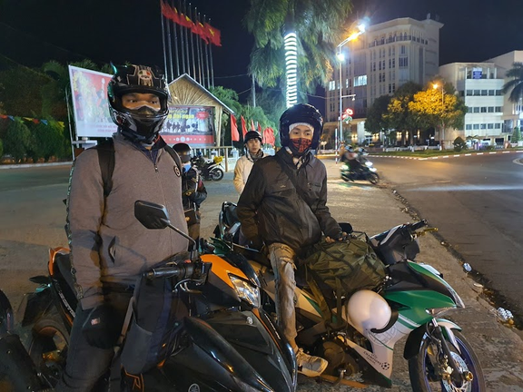 Đích đến của nhóm bạn này là Gia Lai. Họ đang tạm nghỉ chân sau quãng đường dài đi từ TP.HCM.