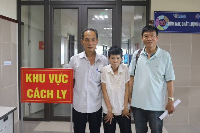 Ông Nguyên (bên phải ảnh) cùng người em rể đến đón bà Huệ hôm 17/7 (Ảnh: BVĐKLS)