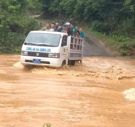 Xe ô tô của Công an xã Chiêu Lưu (huyện Kỳ Sơn) vận chuyển người và phương tiện