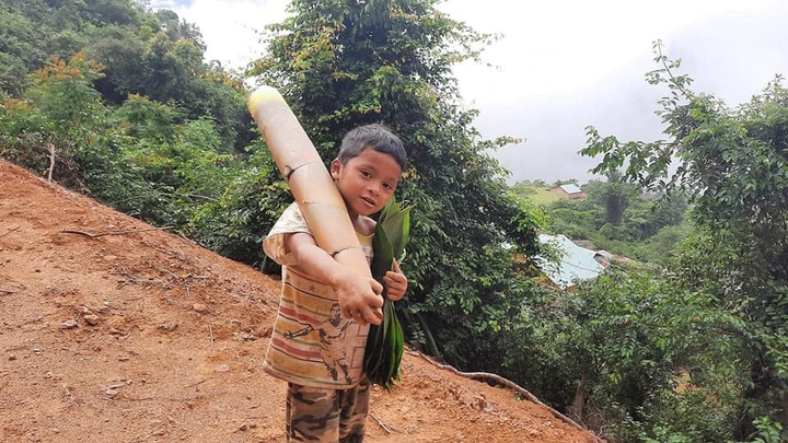 Hình ảnh lay động lòng người: Cậu bé vùng cao chân trần vác măng gửi về tâm dịch
