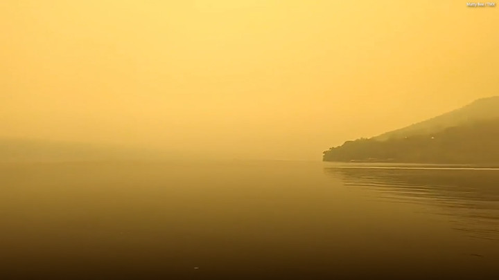 Hồ Keula ở New York đã bị bao phủ trong màn khói màu cam dày đặc, nguyên nhân từ hàng trăm đám cháy rừng bùng phát ở phía bắc Quebec.