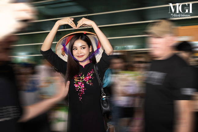 Hoa hậu Engfa diện áo dài, đội nón lá xuất hiện giữa vòng vây của fan Việt