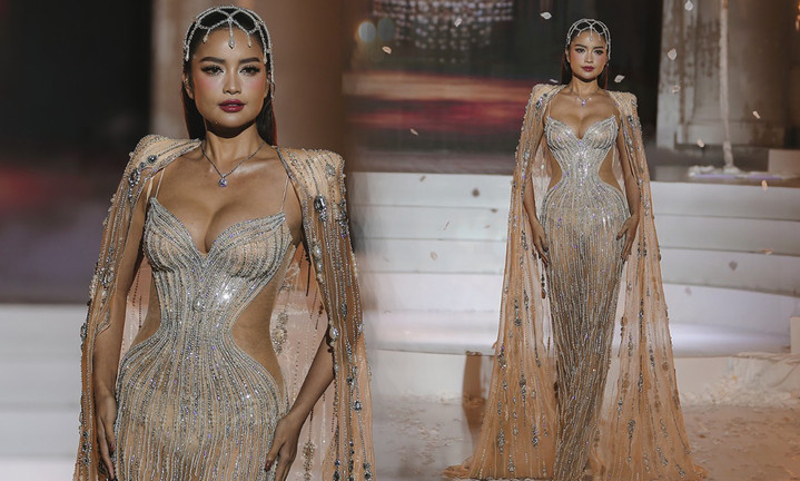 Hoa hậu Ngọc Châu diện thiết kế xuyên thấu, ôm sát khoe vòng 1 gợi cảm. Sau 3 năm đăng quang, Hoa hậu Hoàn vũ Việt Nam 2022 được khen ngày càng thăng hạng nhan sắc.