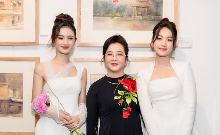 Hoa hậu Ý Nhi tại triển lãm hôm 28/7.
