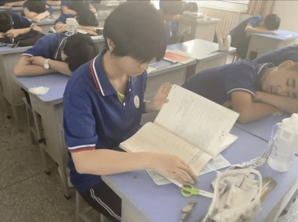 Video do một giáo viên ở Hà Bắc, Trung Quốc ghi lại. Trong đó hầu hết các học sinh đang gục xuống bàn ngủ trưa,  chỉ có ba hoặc năm học sinh đang lúi húi học bài.