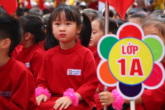 Sáng 5/9, hơn 1.000 cô và trò trường tiểu học Gia Cẩm (thành phố Việt Trì, tỉnh Phú Thọ) tham gia lễ khai giảng năm học mới 2022 - 2023 trong sắc đỏ thẫm của những bộ đồng phục đặc biệt.