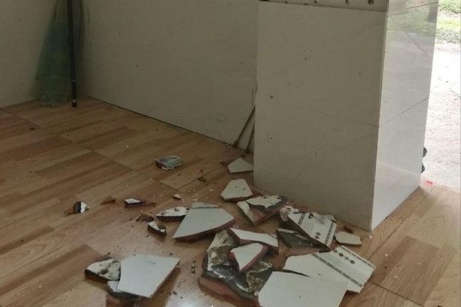 Tường nhà dân tại khu vực Kon Plông bị vỡ do trận động đất ngày 28/7 (Ảnh: MB)