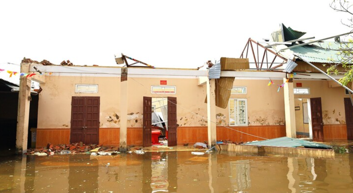 Tại Quảng Trị, nhiều trường bị tốc mái, sập tường rào, hư hỏng thiết bị, học sinh toàn tỉnh nghỉ học để bảo đảm an toàn.