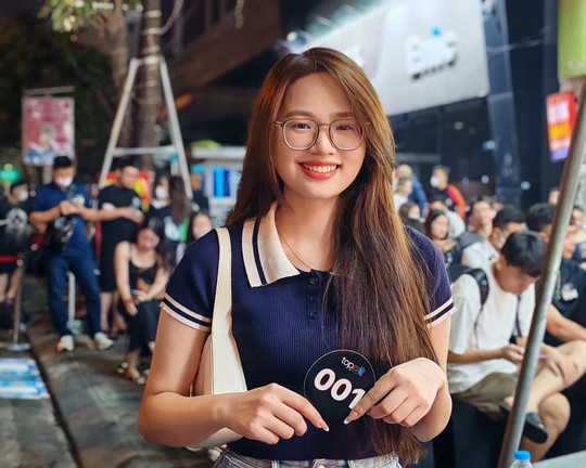 Chị Mỹ Hạnh (Hà Nội) đến địa chỉ của TopZone trên phố Xã Đàn từ 19h30 và trở thành người đầu tiên lấy số thứ tự tại đây. "Màu sa mạc ấn tượng nên tôi quyết định đổi từ iPhone 13 lên model mới là iPhone 16 Pro Max", nữ khách hàng chia sẻ.