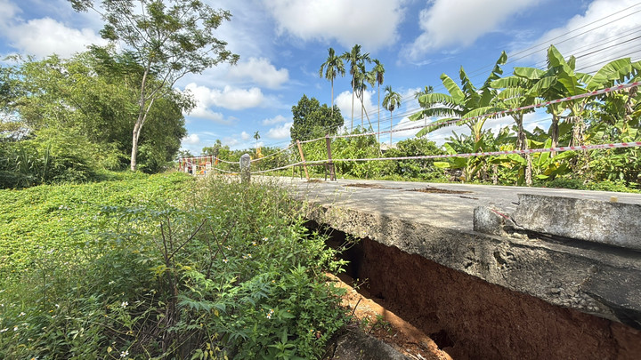 Hơn 100m đường ven sông bị sạt lở 'hở hàm ếch', dân lo lắng trước mùa mưa lũ