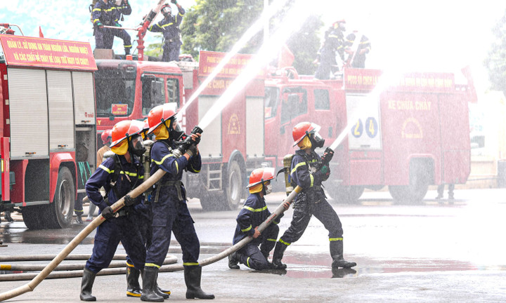 Nhờ triển khai đồng bộ, khoa học, các lực lượng đã khống chế và dập tắt toàn bộ đám cháy giả định sau gần một giờ, bảo đảm an toàn tuyệt đối cho người và phương tiện.