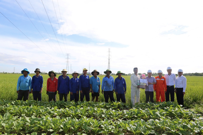 Phó Tổng Giám đốc Lâm Xuân Tuấn (thứ 3 bên trái qua) kiểm tra tiến độ, tặng quà nhà thầu tại dự án TBA 110kV Ngan Dừa, tỉnh Cà Mau (ảnh: PCCM)