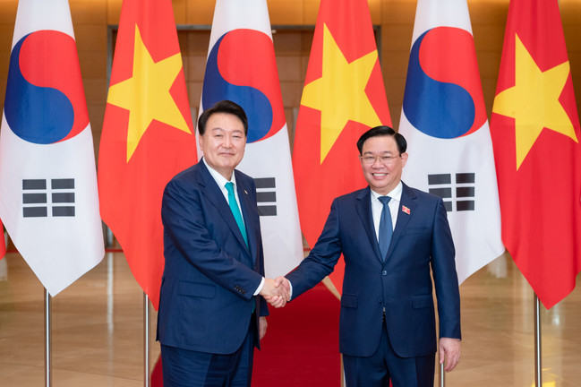 Tổng thống Hàn Quốc Yoon Suk Yeol cho rằng, Quốc hội hai nước là cơ quan lập pháp, dưới sự hỗ trợ của Chủ tịch Quốc hội sẽ có những tác động to lớn, sôi động trong quan hệ của hai nước; khẳng định, thành tựu đạt được 30 năm qua của hai nước, Quốc hội Việt Nam đã hỗ trợ rất tích cực về mặt pháp lý cho hợp tác hai bên; hy vọng thời gian tới, với chức năng của Quốc hội sẽ tiếp tục thúc đẩy mối quan hệ hai nước.