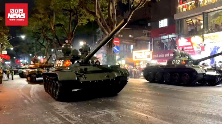 Nhiều người dân có mặt khắp con phố ở Hà Nội từ 7h tối hôm trước, chờ đợi xuyên đêm để được chiêm ngưỡng đoàn xe tăng hùng dũng trên phố.