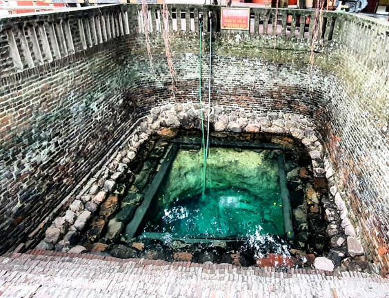 Nước dưới giếng trong xanh màu ngọc bích có thể nhìn thấy đáy. (Ảnh: thuongmitto)