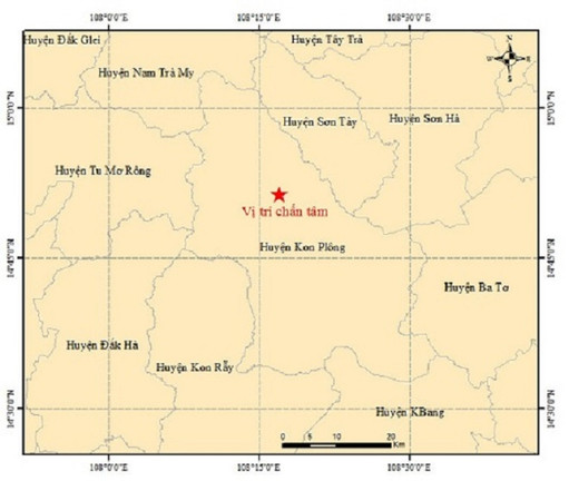 Trung tâm Báo tin động đất và Cảnh báo sóng thần - Viện Vật lý Địa cầu (Viện Hàn lâm Khoa học và Công nghệ Việt Nam) vừa phát đi thông báo về 2 trận động đất xảy ra ở huyện Kon Plông, tỉnh Kon Tum.