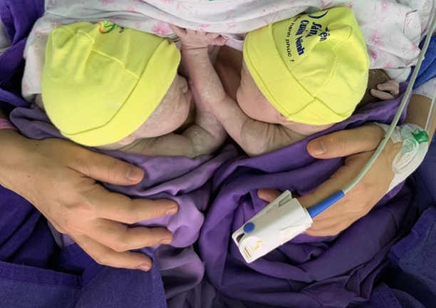 “Thật may mắn khi hai bé sinh đôi của sản phụ ra đời còn nguyên trong bọc ối. Bé trai ra đời trước bé gái 3 phút”, bác sĩ Long nói.