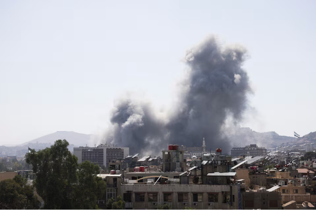 Theo Reuters, đợt không kích của Israel nhắm vào một tòa nhà được cho là trụ sở của Bộ Quốc phòng Syria ở trung tâm Damascus, cùng các đoàn xe quân sự đang trên đường tới Sweida.