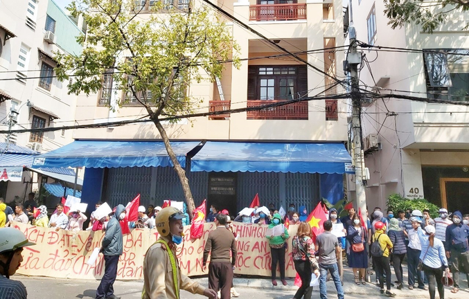 Ngày 13/2/2020, khi nhận thông tin Công ty Bách Đạt An có đơn kháng cáo bản án, khách hàng tập trung căng băng rôn trước TAND Cấp cao tại Đà Nẵng để phản ứng.