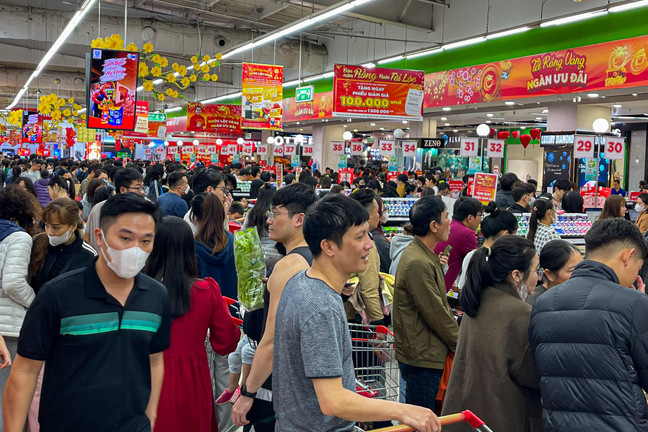 Khách 'quây' kín siêu thị, sắm sửa đón Tết Giáp Thìn 2024