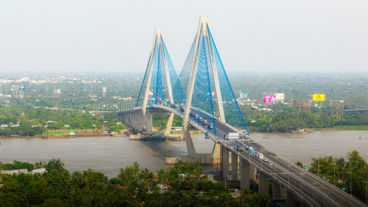 Cầu Mỹ Thuận 2 nối liền 2 tỉnh Vĩnh Long và Tiền Giang với kinh phí 5.000 tỷ đồng là cầu dây văng đầu tiên mà Việt Nam làm chủ công nghệ xây dựng.