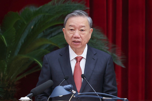 Tổng Bí thư Tô Lâm phát biểu chỉ đạo Hội nghị toàn quốc quán triệt, triển khai tổng kết việc thực hiện Nghị quyết số 18-NQ/TW. (Ảnh: Thống Nhất/TTXVN)