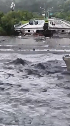 Khoảnh khắc dòng lũ như sóng thần đánh sập cầu ở Đài Loan