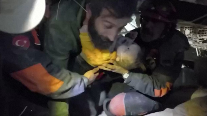 Khoảnh khắc em bé được giải cứu sau 65 giờ kẹt dưới đống đổ nát ở Hatay