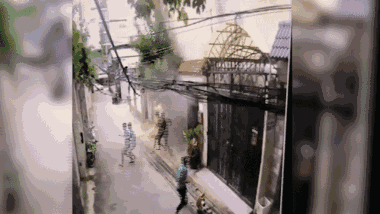 12h30 ngày 24/9, căn nhà 4 tầng tại phường 27 (Bình Thạnh, TP.HCM) bất ngờ đổ sập xuống, 2 người đàn ông bên trong chạy ra cổng và may mắn thoát nạn.