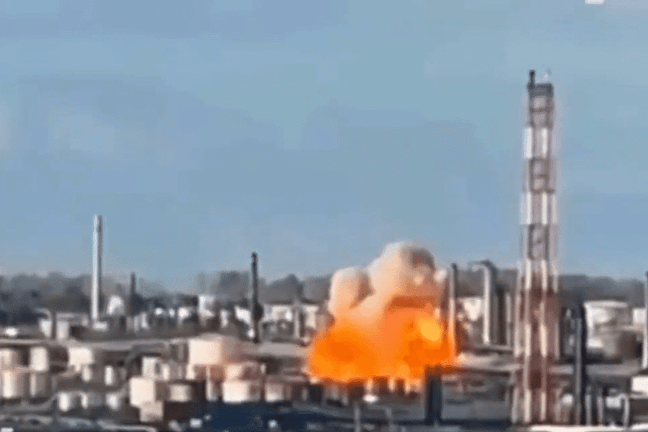 Khoảnh khắc UAV Ukraine tấn công nhà máy lọc dầu Nga và gây ra đám cháy lớn. (Video: X)