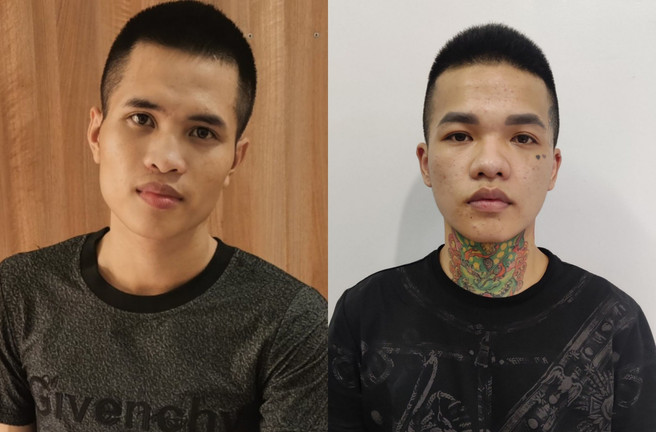 Hoàng Văn Cường (bên trái) và Nguyễn Minh Đức bị cơ quan chức năng khởi tố tội "Tàng trữ, sử dụng trái phép vũ khí quân dụng”. (Ảnh: CA Bắc Giang).