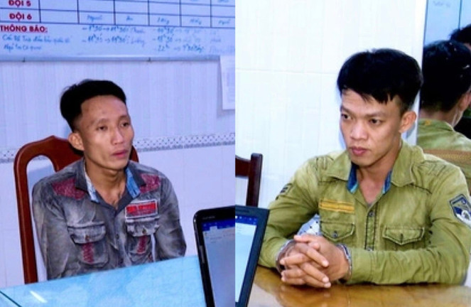 Bị can Huỳnh Văn Tèo (trái) và Mai Xuân Dũng tại cơ quan công an.