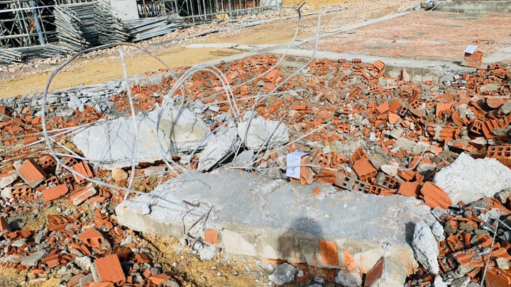 Hiện trường vụ sập tường khiến 11 người thương vong.